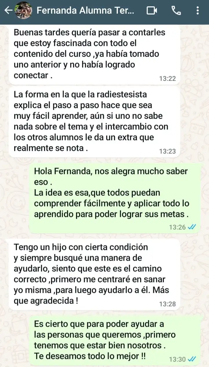 Estoy maravillada con esta nueva experiencia, he aprendiddo desde cero como desbloquear mis centros energéticos, hoy me siento una mujer nueva. Recomiendo 100% esta capacitación.Gracias !!!